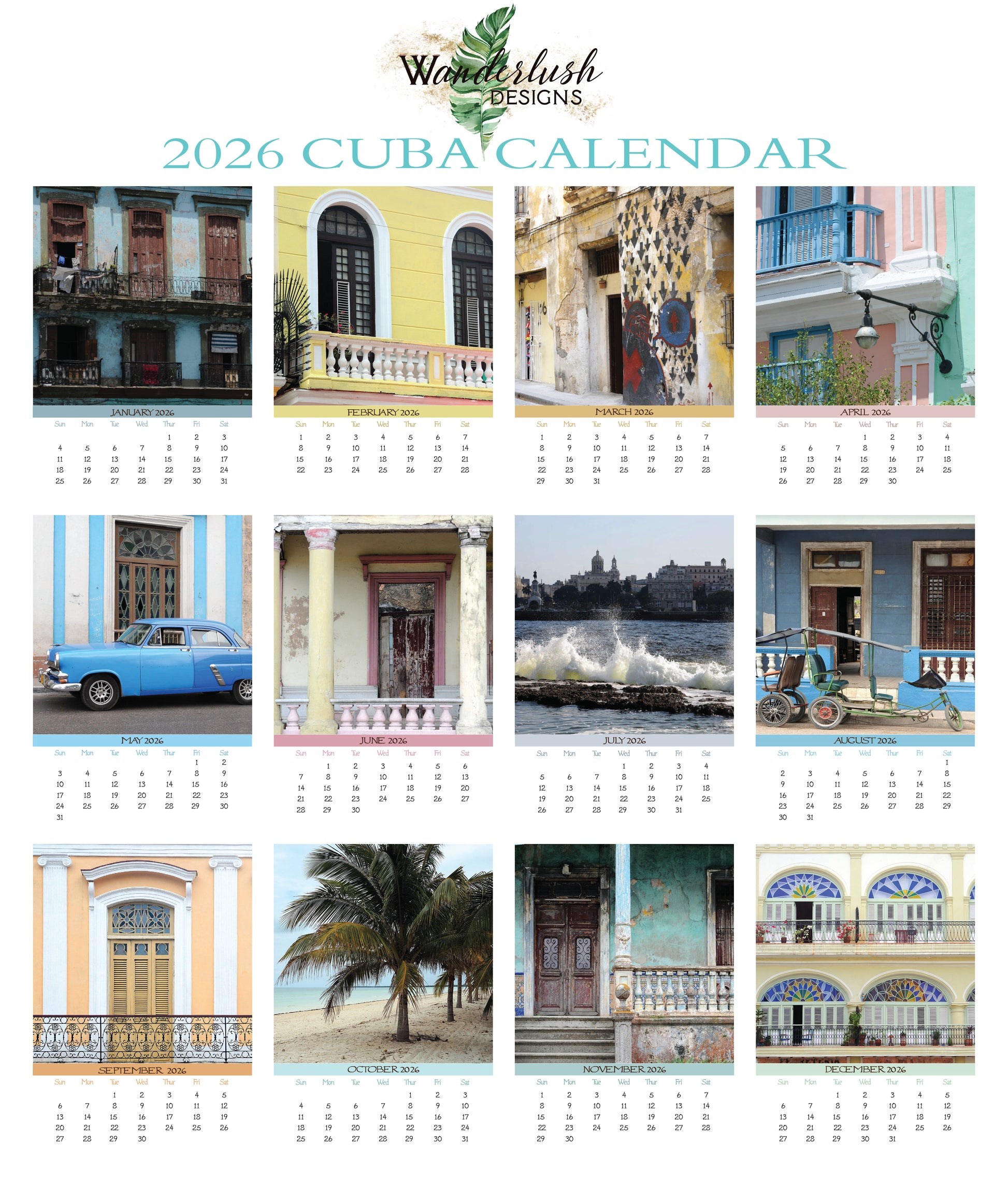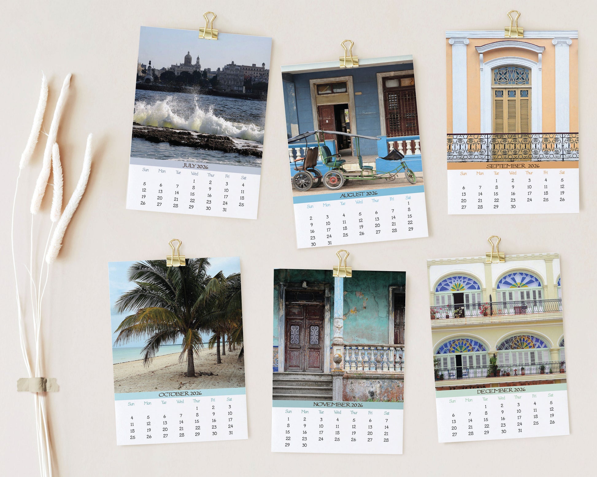 The calendar includes 12 - 5x7" photo pages for each calendar month as well as 1 - 5x7" collage cover. The photos were taken in Cuba and showcases the beaches and architecture of the country. The photos are full of colour and texture and will be sure to add a sparkle to your environment. The photo size is 5x5" and can be used afterwards as prints.