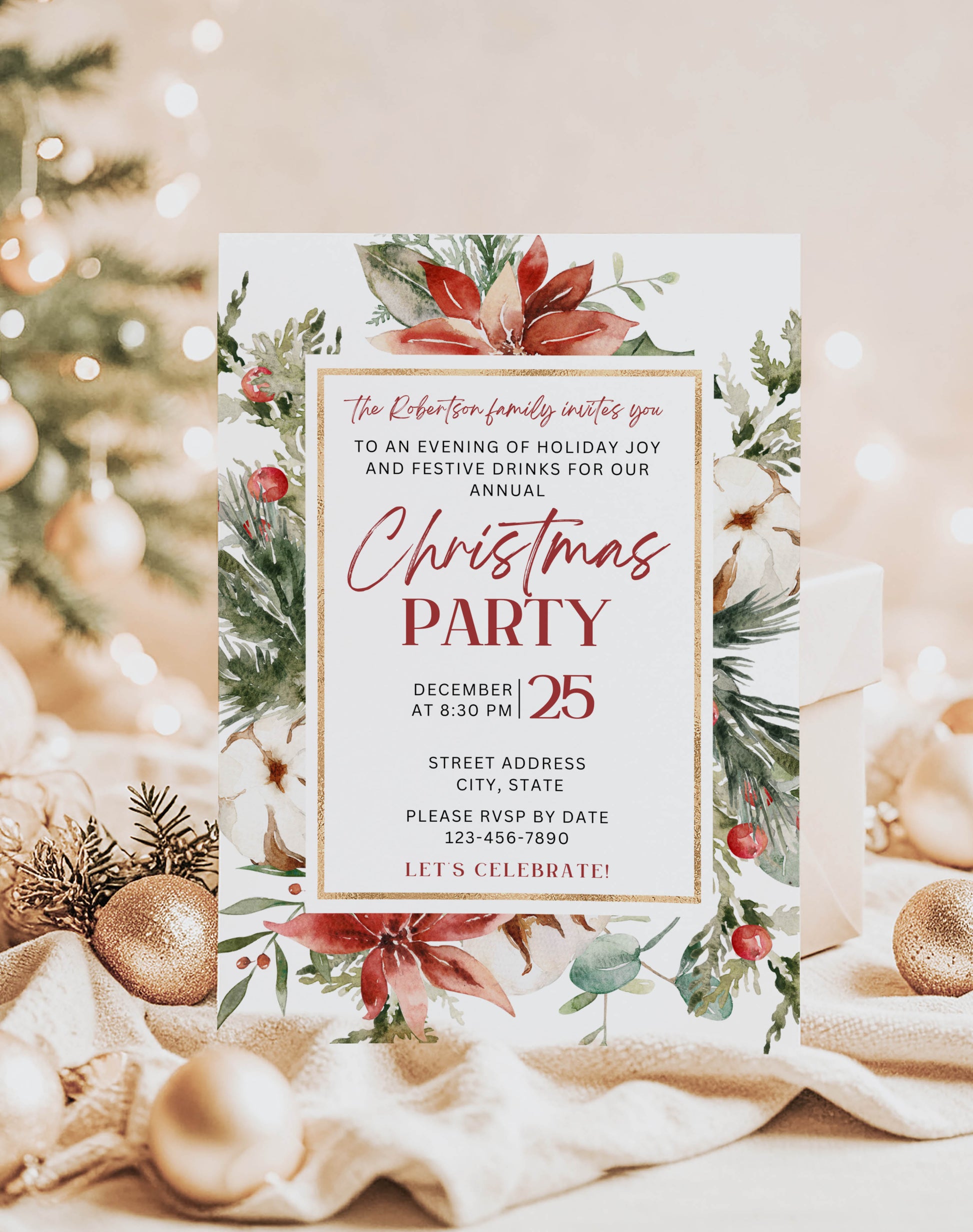 DIGITAL AND INSTANT DOWNLOAD (EDIT IN CANVA) CHRISTMAS GIFT TAG (2" X 3.5") AND CHRISTMAS DINNER/PARTY INVITATION (5" X 7")